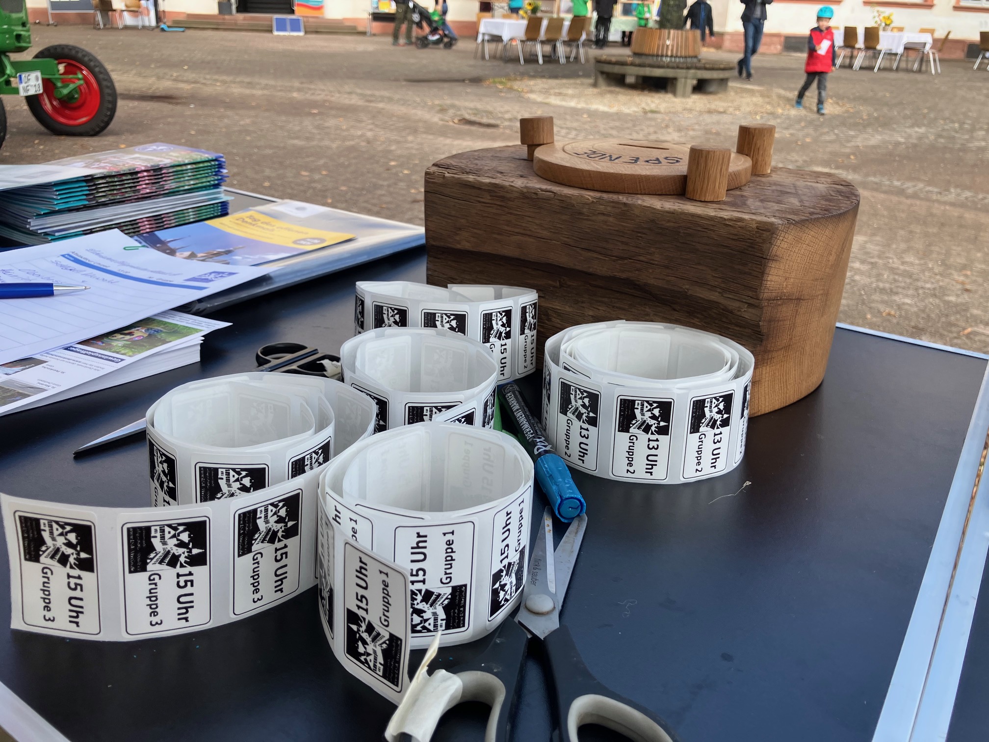 Trotz des am frühen Vormittag noch heftigem Regen haben sich schon ab 10:00 Uhr, während unseres Aufbaus, die ersten Interessierten für die angekündigten Rundgänge angemeldet. Bewährt hat sich dabei unser neues Anmeldungsverfahren. Voranmeldungen werden nicht mehr akzeptiert, alles Anmeldungen müssen am Infostand und namentlich erfolgen.